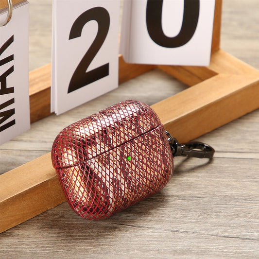 حافظة سماعة رأس شبكية من جلد الثعبان J01 لأجهزة AirPods 3 (أحمر)
