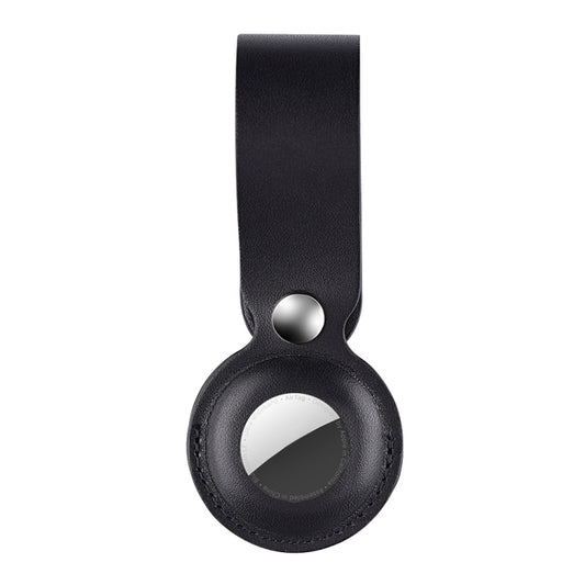 For AirTag Shockproof Anti-scratch Leather Protective Case Cover with Hang Loop Key Chain(Black)