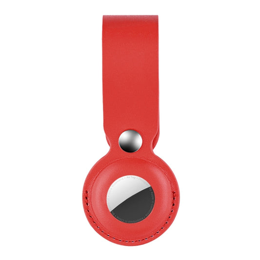 For AirTag Shockproof Anti-scratch Leather Protective Case Cover with Hang Loop Key Chain(Red)