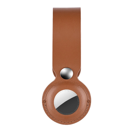 For AirTag Shockproof Anti-scratch Leather Protective Case Cover with Hang Loop Key Chain(Brown)