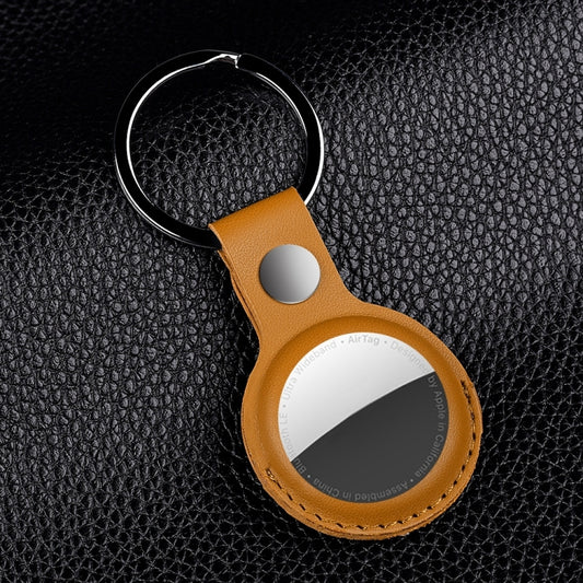 Shockproof Anti-scratch Leather Protective Case Cover Key Chain with Hang Loop For AirTag(Yellow)