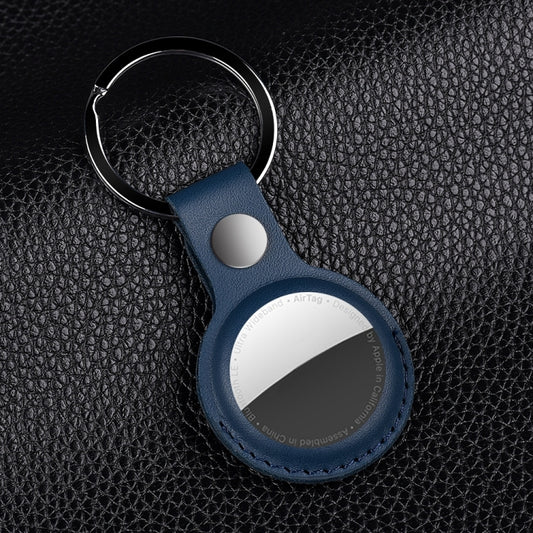For AirTag Shockproof Anti-scratch Leather Protective Case Cover with Hang Loop Key Chain(Blue)