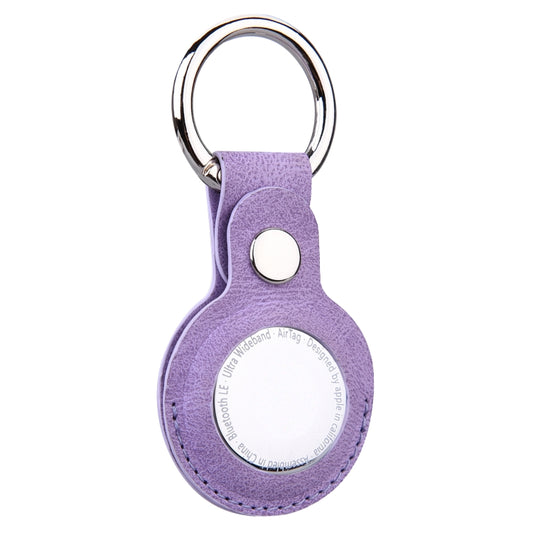 حافظة جلدية مزخرفة بالزهور مع حلقة مفاتيح لـ AirTag (أرجواني)