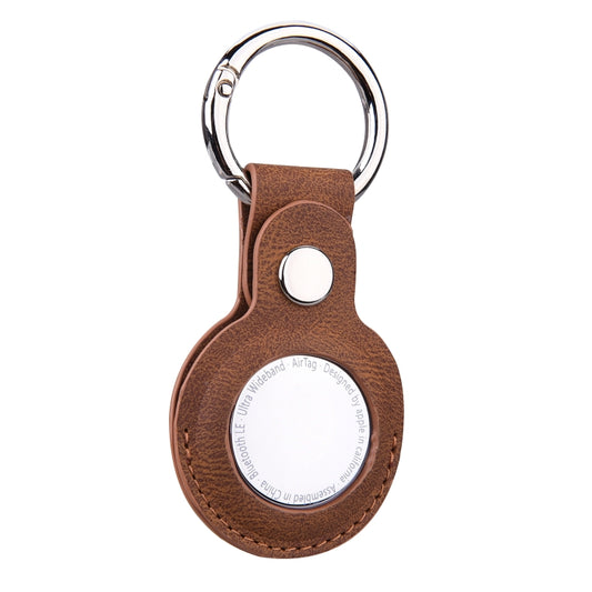 حافظة جلدية مزخرفة بالزهور مع حلقة مفاتيح لـ AirTag (بني)