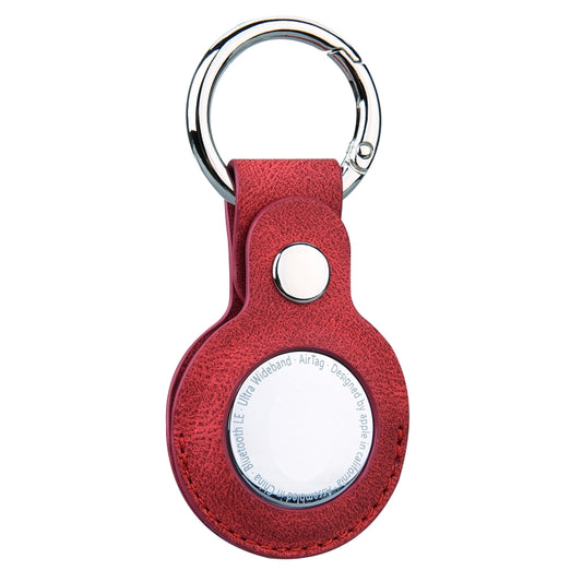 حافظة مستديرة الشكل من ألياف الكربون مضادة للسقوط مع حلقة سلسلة مفاتيح لـ AirTag (أحمر)