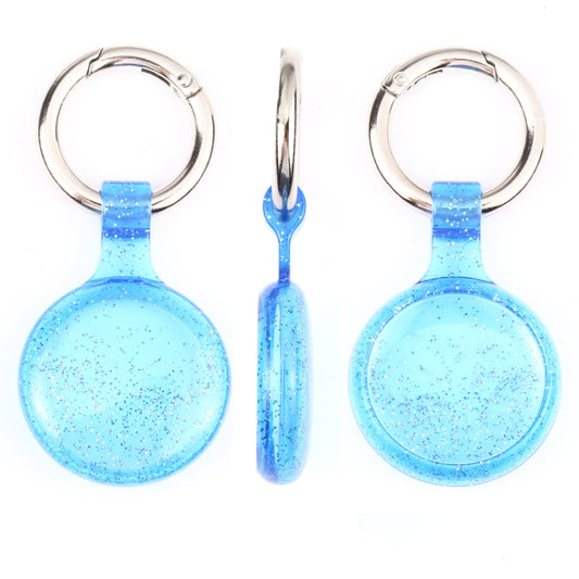 Anti-scratch Clear TPU Shockproof Protective Cover Case with Keychain Hook Loop For AirTag( Glitter Powder Blue)