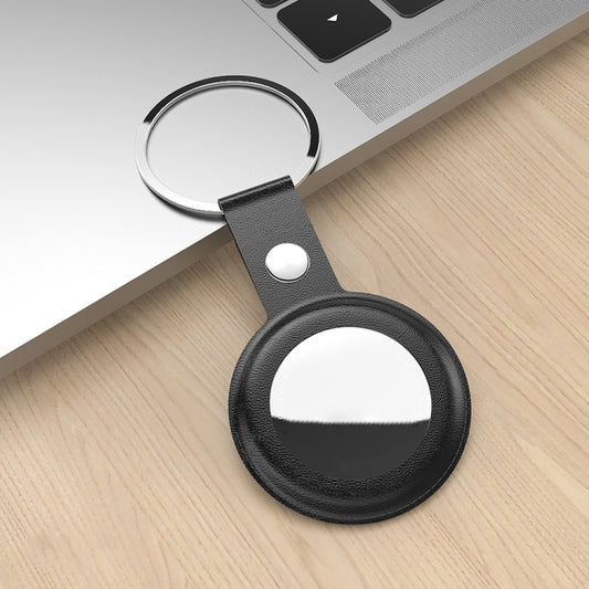 PU Leather Case Shockproof Anti-scratch Protective Cover with Keychain Ring Loop For AirTag(Black)