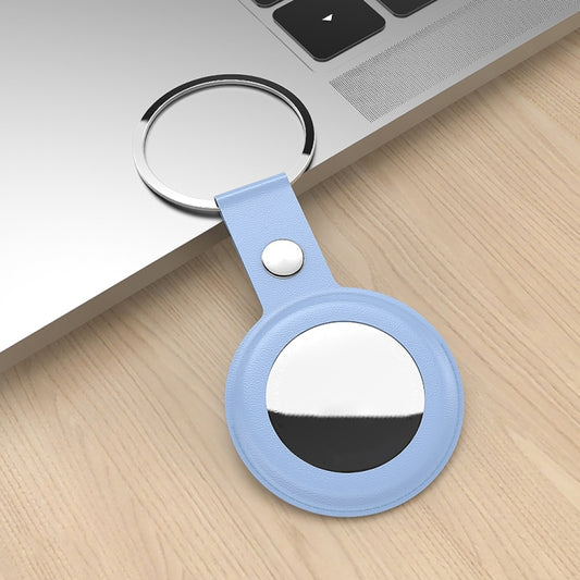 PU Leather Case Shockproof Anti-scratch Protective Cover with Keychain Ring Loop For AirTag(Light Blue)
