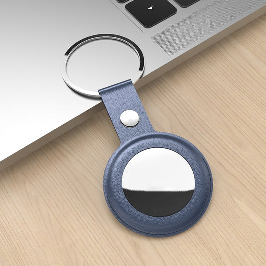 PU Leather Case Shockproof Anti-scratch Protective Cover with Keychain Ring Loop For AirTag(Navy Blue)