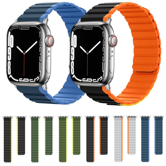 Smart Magnetic Silicone Watch Band For Apple Watch Ultra 49mm&Watch Ultra 2 49mm / Series 9&8&7 45mm / SE 3&SE 2&6&SE&5&4 44mm / 3&2&1 42mm(Black+Orange)