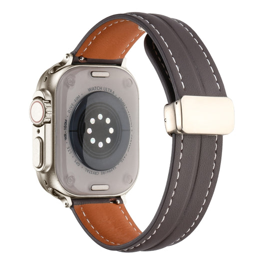 Folding Buckle Grooved Genuine Leather Watch Band For Apple Watch Ultra 49mm / Series 8&7 45mm / SE 2&6&SE&5&4 44mm / 3&2&1 42mm(Coffee)
