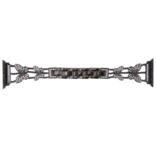 Butterfly Metal Diamond Watch Band For Apple Watch Series 9&8&7 41mm / SE 3&SE 2&6&SE&5&4 40mm / 3&2&1 38mm(Black)