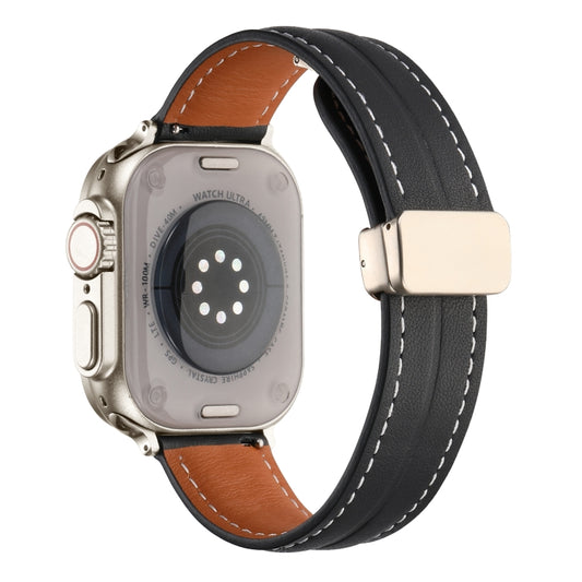 Folding Buckle Grooved Genuine Leather Watch Band For Apple Watch Series 8&7 41mm / SE 2&6&SE&5&4 40mm / 3&2&1 38mm(Black)