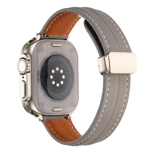 Folding Buckle Grooved Genuine Leather Watch Band For Apple Watch Ultra 49mm / Series 8&7 45mm / SE 2&6&SE&5&4 44mm / 3&2&1 42mm(Grey)