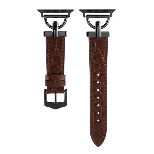 D-Buckle Cocodile Genuine Leather Watch Band For Apple Watch Series 9&8&7 41mm / SE 3&SE 2&6&SE&5&4 40mm / 3&2&1 38mm(Coffee)