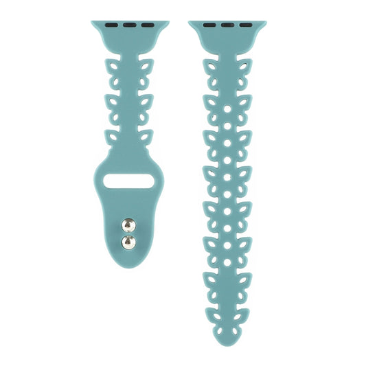 Butterfly Hollow Silicone Watch Band For Apple Watch Series 9&8&7 41mm / SE 3&SE 2&6&SE&5&4 40mm / 3&2&1 38mm(Baby Green)