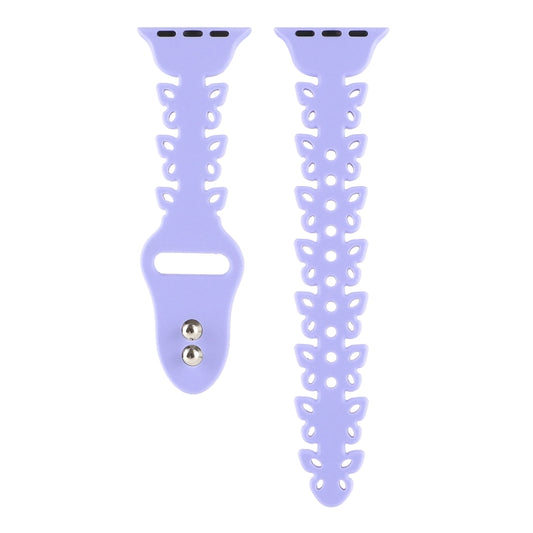 Butterfly Hollow Silicone Watch Band For Apple Watch Series 9&8&7 41mm / SE 3&SE 2&6&SE&5&4 40mm / 3&2&1 38mm(Purple)