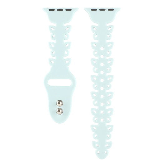Butterfly Hollow Silicone Watch Band For Apple Watch Ultra 49mm&Watch Ultra 2 49mm / Series 9&8&7 45mm / SE 3&SE 2&6&SE&5&4 44mm / 3&2&1 42mm(Light Cyan)