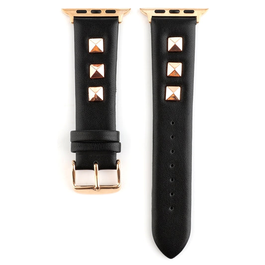 Single Row Riveted Genuine Leather Watch Band For Apple Watch Series 9&8&7 41mm / SE 3&SE 2&6&SE&5&4 40mm / 3&2&1 38mm(Pink Rose Gold)