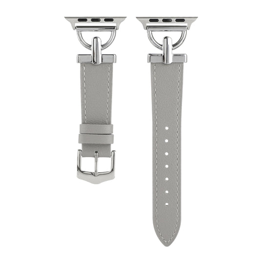 For Apple Watch Series 9&8&7 41mm / SE 3&SE 2&6&SE&5&4 40mm / 3&2&1 38mm D-Buckle Plain Genuine Leather Watch Band(Grey)