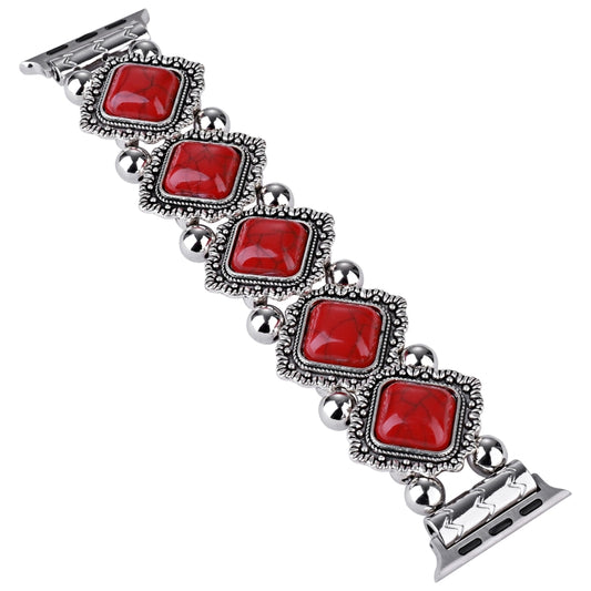 Retro Pine Stone Metal Watch Band For Apple Watch Series 9&8&7 41mm / SE 3&SE 2&6&SE&5&4 40mm / 3&2&1 38mm (Red)