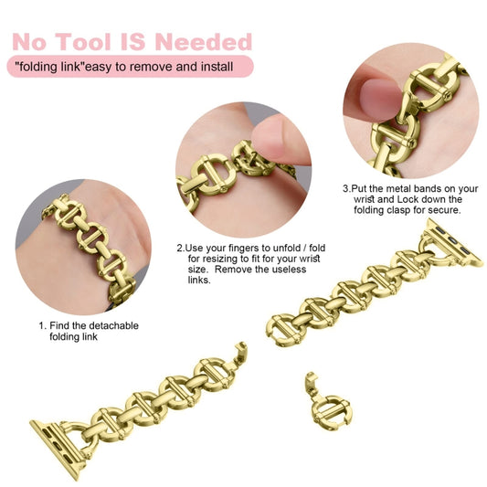 Ladder Buckle Metal Watch Band For Apple Watch Ultra 49mm(Gold)