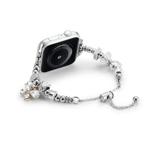 حزام ساعة معدني من الخرز بأربع أوراق لساعة أبل 2 مقاس 42 ملم (فضي)