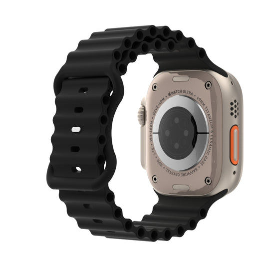 حزام ساعة من السيليكون بتصميم المحيط لساعة أبل الترا 49 ملم وساعة الترا 2 49 ملم / السلسلة 9&8&7 45 ملم / SE 3&SE 2&6&SE&5&4 44 ملم / 3&2&1 42 ملم (أسود)