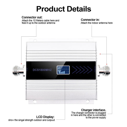 DCS-LTE 4G Phone Signal Repeater Booster, US Plug(Silver)