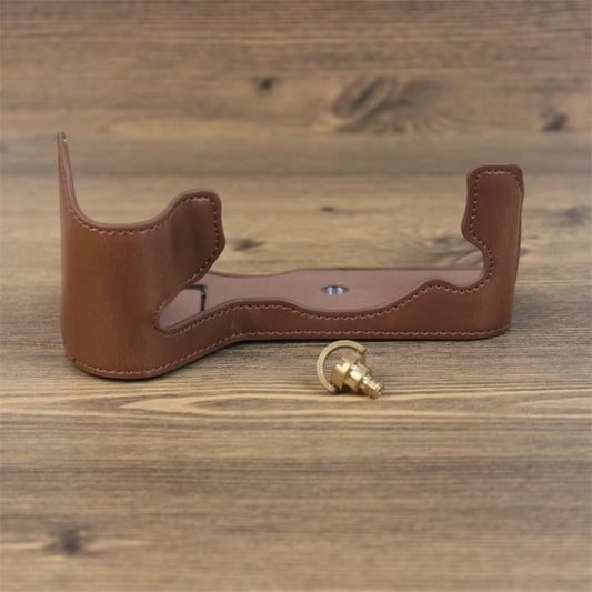 For Fujifilm XH2S 1/4 inch Thread PU Leather Camera Half Case Base (Coffee)