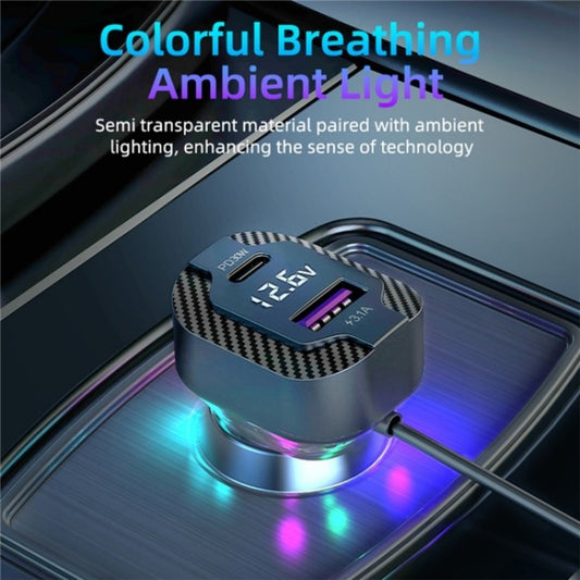 YQ7 Voltage Display PD 30W Fast Charging 2 x Type-C + 3 x USB Car Charger with 1.5m Extension Cable
