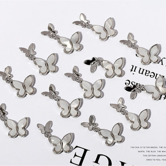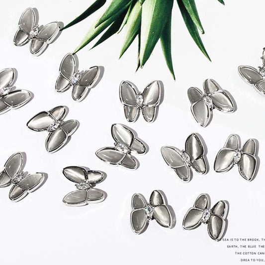 10 PCS Butterfly Nail Art Accessories Golden Three-dimensional Cat's Eye Butterfly Zircon DIY Nail Decoration Accessories(Silver 6 11x14 MM)