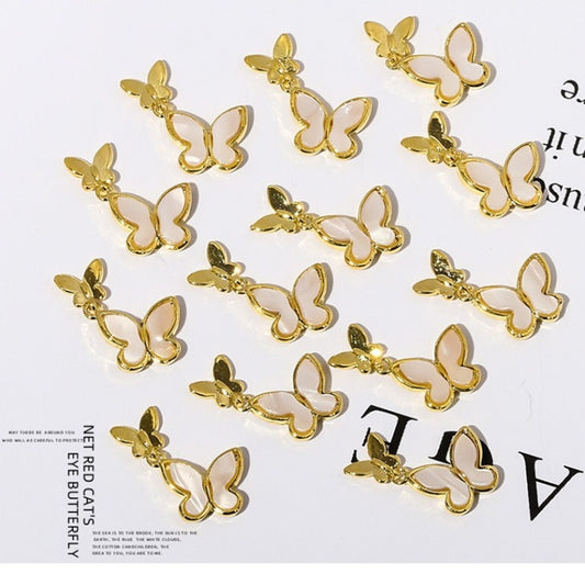 10 PCS Butterfly Nail Art Accessories Golden Three-dimensional Cat's Eye Butterfly Zircon DIY Nail Decoration Accessories(Gold 5 11x14 MM)