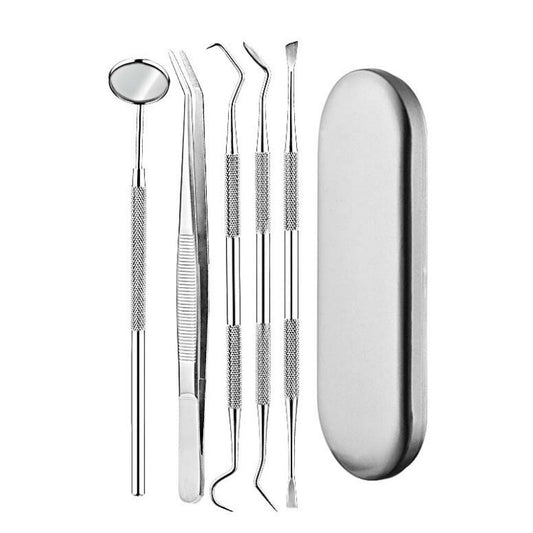 5 in 1 Silver Box Stainless Steel Dental Tools Dental Care Tartar Tool Dentist Tool Set
