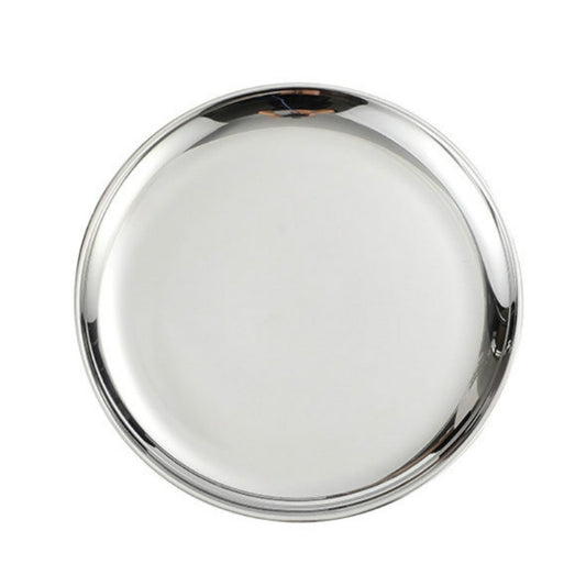 Stainless Steel Thickened Round Plate Cafe Tray Fruit Cake Plate Bone Plate Dish Shallow Plate, Diameter: 17cm, Style: Bright Mirror Silver