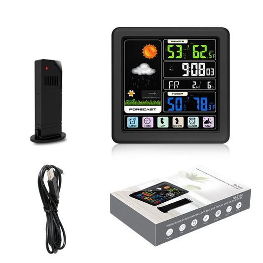 TS-3310 Wireless Weather Clock Multifunctional Color Screen Clock Creative Home Touch Screen Thermometer Black