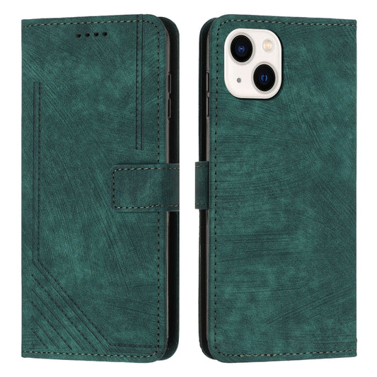 حافظة هاتف جلدية بنمط شريطي لهاتف iPhone 13 mini مع حبل قصير (أخضر)