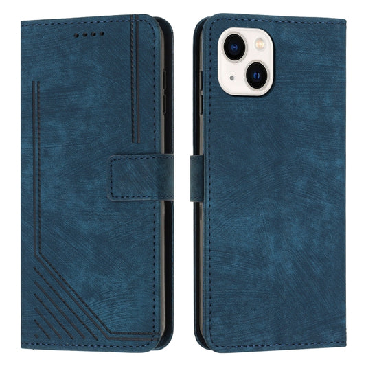 حافظة هاتف جلدية بنمط شريطي لهاتف iPhone 13 mini مع حبل (أزرق)