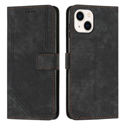 حافظة هاتف جلدية بنمط شريطي لهاتف iPhone 13 mini مع حبل (أسود)