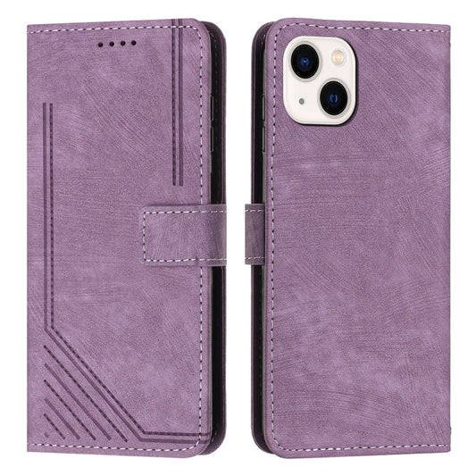 حافظة هاتف جلدية بنمط شريطي لهاتف iPhone 13 mini مع حبل (أرجواني)
