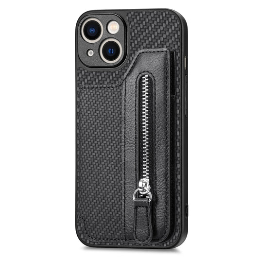 حافظة هاتف آيفون 14 بلس من ألياف الكربون بسحاب أفقي ومحفظة (أسود)