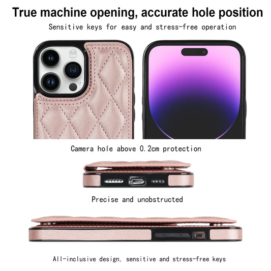 حافظة هاتف آيفون 14 برو مصنوعة من جلد البولي يوريثان بإبزيم مزدوج (ذهبي وردي)