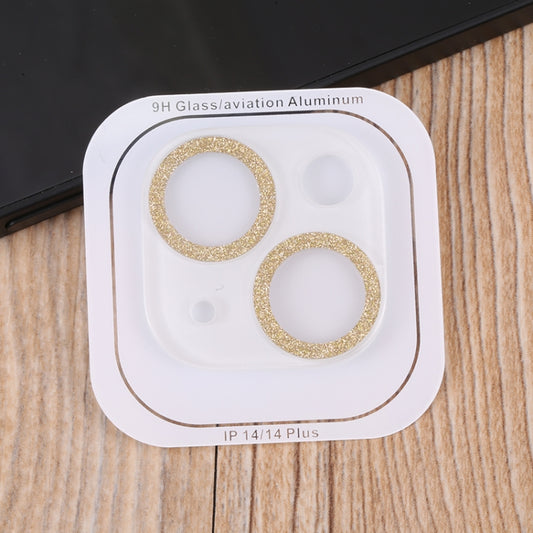For iPhone 14 / 14 Plus 50pcs Tempered Glass Glitter CD Texture Back Camera Film(Gold)
