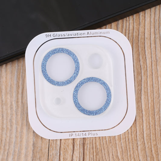 For iPhone 14 / 14 Plus Tempered Glass Glitter CD Texture Back Camera Film(Blue)