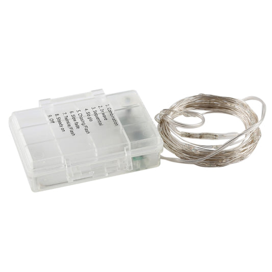 ضوء سلسلة أسلاك نحاسية فضية بطول 5 متر، 50 مصباح LED 3 × صندوق بطاريات AA مصباح زينة مع جهاز تحكم عن بعد، تيار مستمر 5 فولت