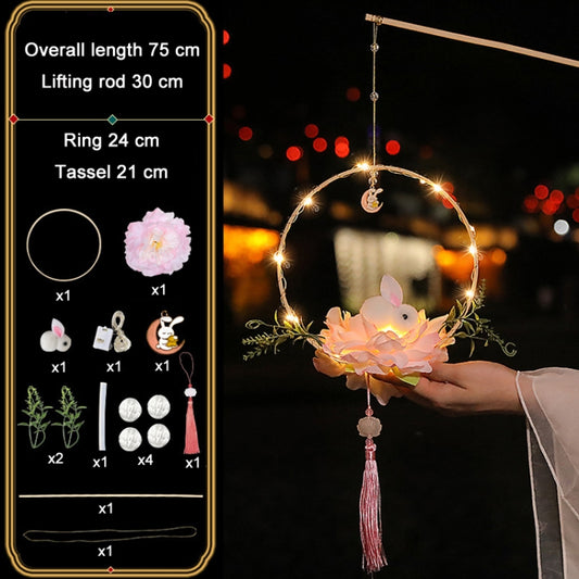 فانوس يدوي لمهرجان القمر للأطفال مصنوع يدويًا، اللون: فروع الفاوانيا الوردي الخوخي
