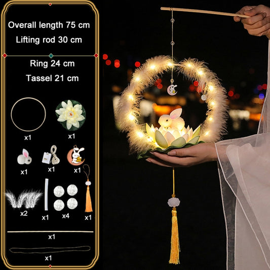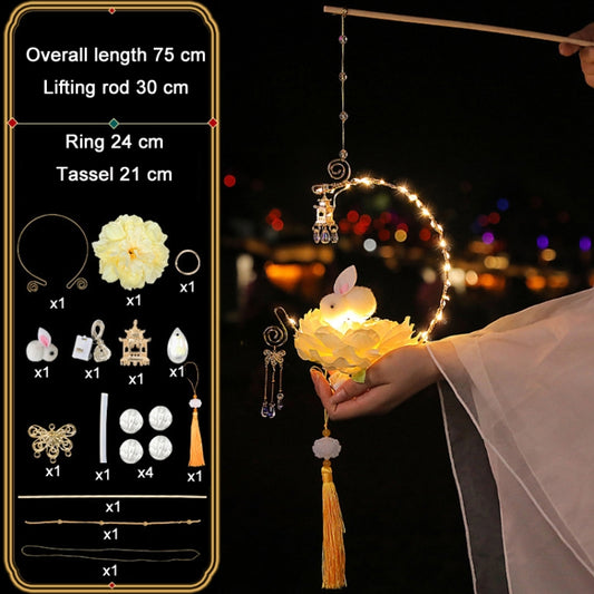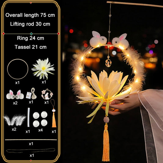 فانوس يدوي لمهرجان القمر للأطفال مصنوع يدويًا، اللون: لوتس صيفي أبيض حليبي