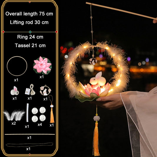 فانوس يدوي لمهرجان القمر للأطفال مصنوع يدويًا، اللون: لوتس صيفي وردي فاتح