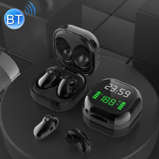 S6 Plus Bluetooth 5.0 TWS شاشة رقمية تعمل باللمس ساعة صغيرة سماعة بلوتوث لاسلكية حقيقية مع صندوق شحن (أسود)