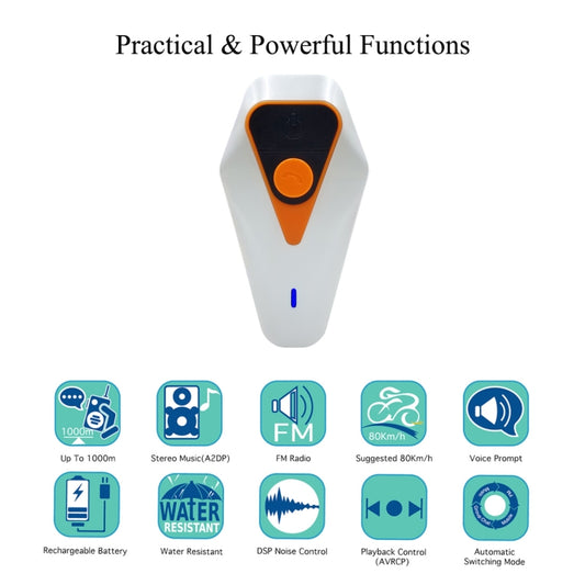 WT002 1000m IPX5 دراجة نارية مقاومة للماء 2 مستخدمين كامل مزدوج التحدث بلوتوث إنترفون سماعات متعددة البيني، دعم تلقي المكالمات والاستماع إلى الموسيقى وتقليل الضوضاء
